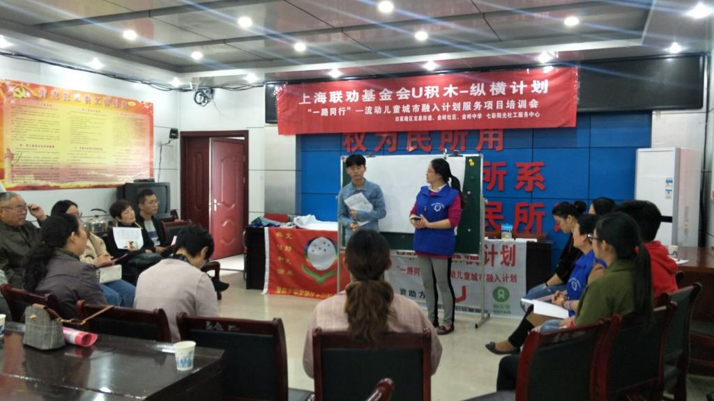 11月4日,百合小说 社会工作专业部分同学于淮南市金岭社区参加了上海联劝基金会U积木—纵横计划支持的“流动儿童城市融入计划服务项目培训会”。龙泉街道、金岭社区和七彩阳光的工作人员以及金岭中学的部分教师列席会议。本次培训会旨在深层次了解流动儿童形成原因、面临的困境、如何介入解决他们的困难,以便于他们能更好的融入城市,享受美好的生活。