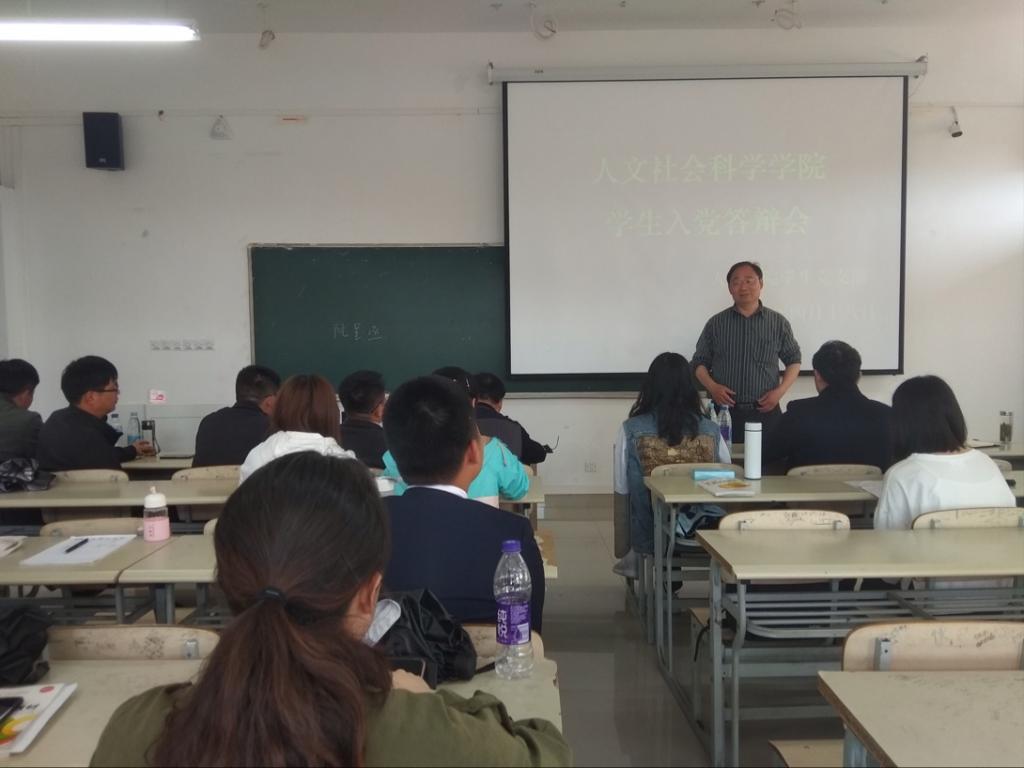 4月18日下午2:30,人文学院在崇智楼A333教室举行学生入党公开答辩会。本次答辩会由学生党支部书记张娜主持,特邀学院领导班子及各系主任等11人参加会议并担任评委。