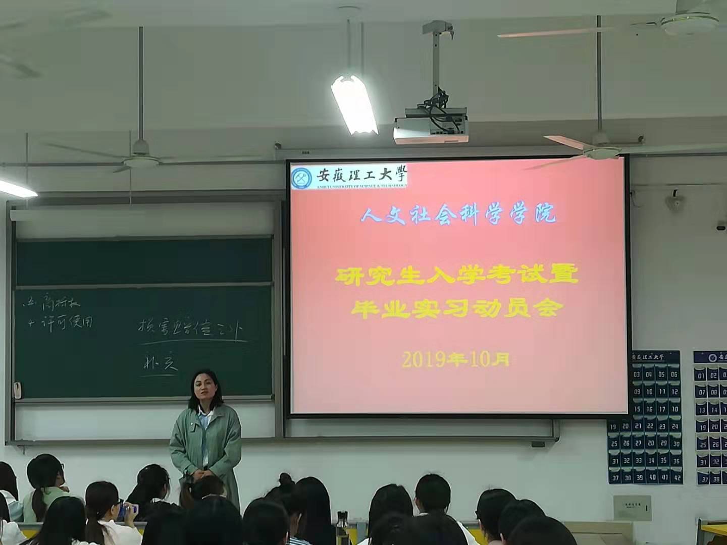 10月22日下午,人文学院在明理南312教室召开研究生入学考试和毕业实习动员会,业务副院长方胜、毕业班辅导员张娜老师以及毕业班同学参加了会议。