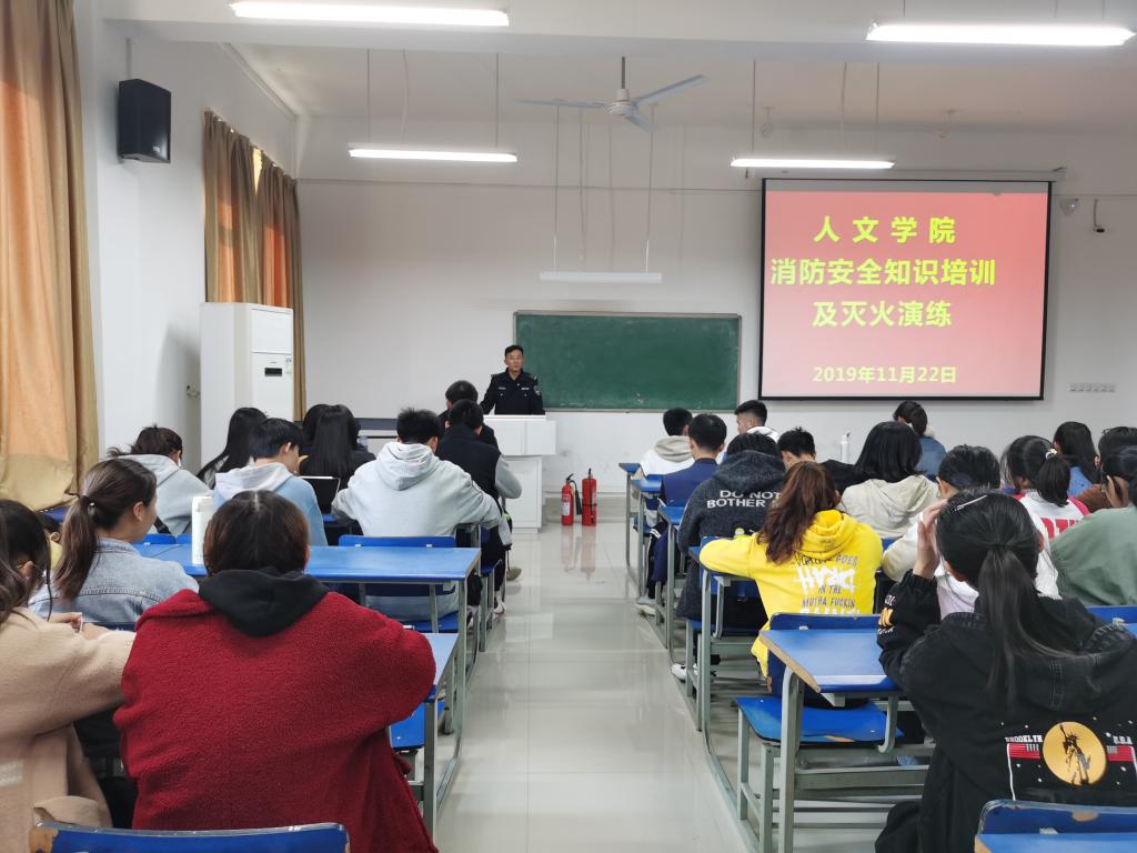 11月22日下午,人文学院在崇智楼A121举办消防安全知识培训及灭火演练活动。学院邀请保卫处技防与消防管理科彭广峰科长给学生做培训讲座和灭火示范。部分2019级新生参加了培训和灭火演练,辅导员闪诚章老师主持此次活动。