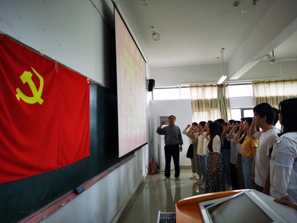 人文学院学生党支部于6月17日下午在崇智楼A333举行了“老党员重温入党誓词、新党员入党宣誓”活动,学院党总支书记吴云平,副书记姚嗣宏,学生支部书记、学生辅导员张娜,陈会、闪诚章等教工党员以及毕业班16名党员参加此次活动。