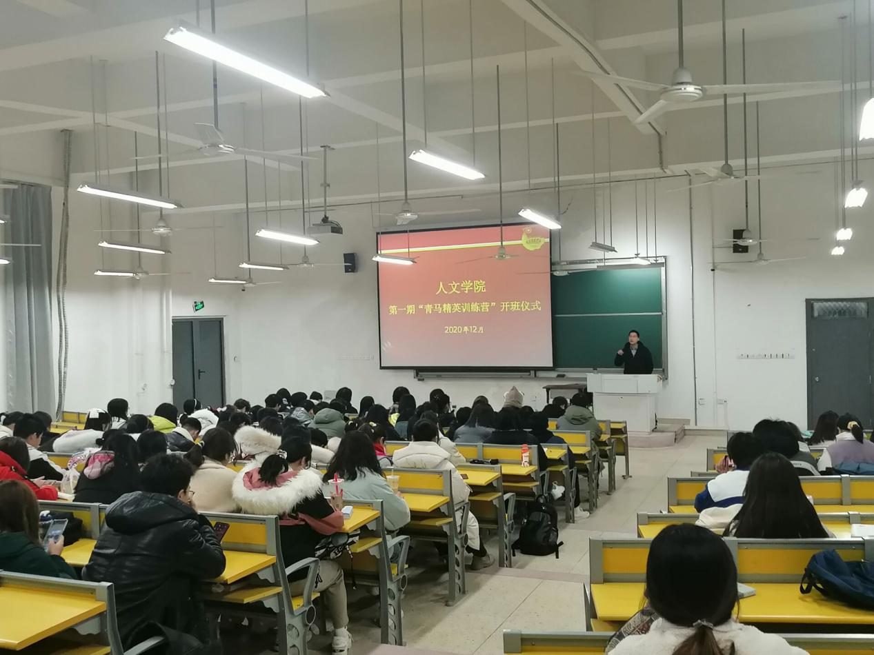 12月16日晚6:30,人文学院在明理106教室举行第一期“青马精英训练营”开班仪式。闪城章老师担任开班仪式的主讲人,大一大二学生干部共100余人参加。