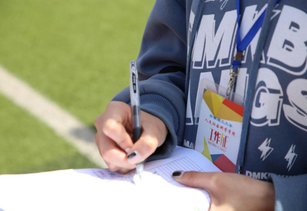 为保证运动会的顺利进行,学院全力做好后勤工作,坚守赛场,默默付出。杨超同学在采访中说:“大家喊选手就位,清理赛道,细致入微,很是辛苦。”在女子4*100m接力中,郑梦利同学不慎摔倒,工作人员小心的帮忙清理、包扎伤口。从训练时的陪伴到比赛时的奔波,学院工作人员一直在用最周到方式为比赛保驾护航。
