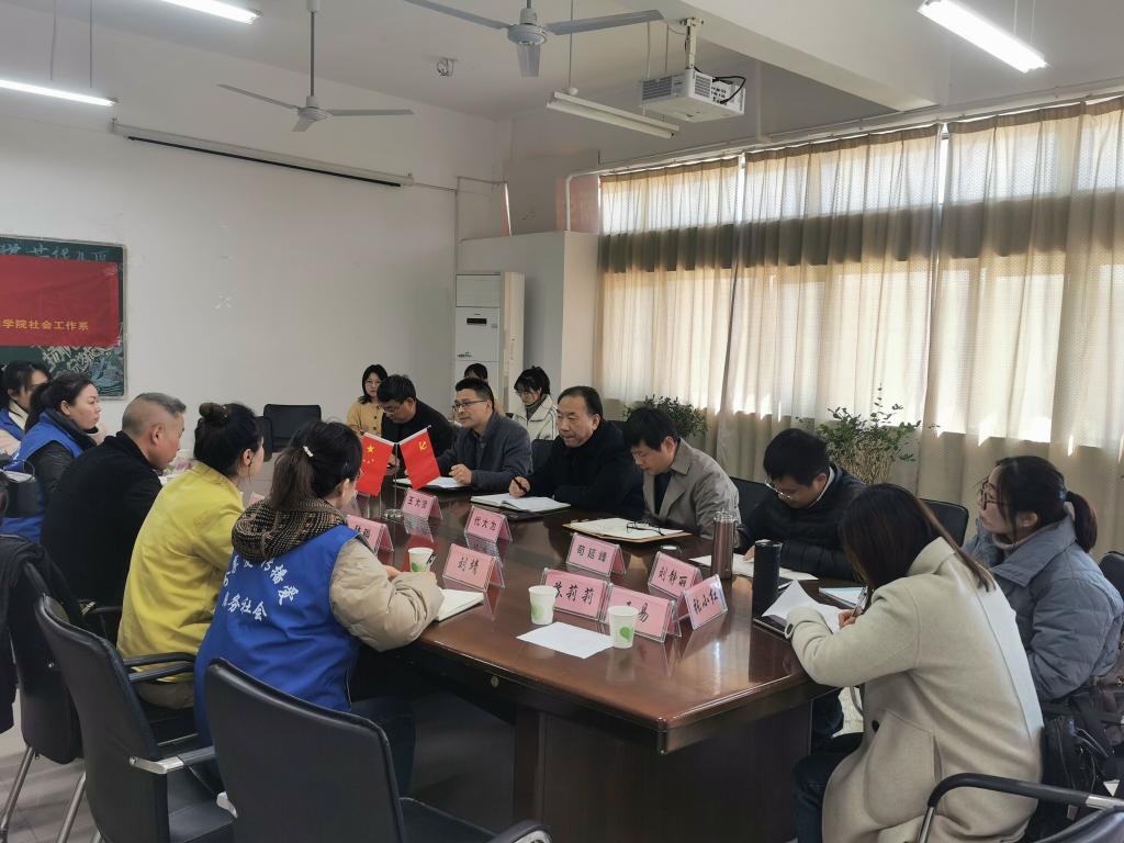王大贤对三家单位的来访表示热烈欢迎并感谢其对人文学院及社会工作专业的关心和支持,以社会救助的发展演进为切入点,就社会公益服务活动的价值意义进行说明,希望各方合作实现资源的整合,真正将社会工作服务落到实处。方胜重点介绍了社会工作专业的办学理念和学院师生近年来在儿童青少年和老年人领域开展的服务活动,向与会人员阐述了社会工作专业“社工+医疗(康养)、法学、艺术、传媒”的新文科建设思路,表示学院将贯彻落实习近平总书记关于社区治理的重要指示精神,发挥专业特长,结合党史教育为群众办实事,为淮南创建文明城市贡献力量。