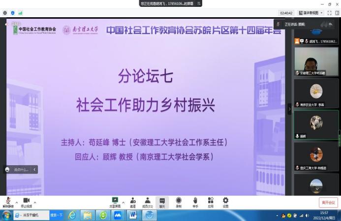 12月4日,由中国社会工作教育协会苏皖片区社会工作中心举办、南京理工大学公共事务学院承办的“中国社会工作教育协会苏皖片区第十四届年会暨共同富裕——社会工作站建设与基层治理论坛”在线举行,百合小说 人文学院师生积极参会。社工系主任苟延峰主持“社会工作助力乡村振兴”分论坛并作主题发言。