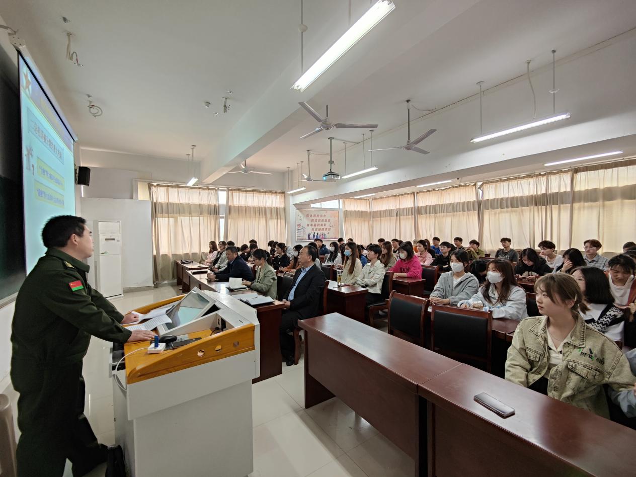 报告会中,胡玉强上校围绕国家安全吗、什么是国家安全、维护国家安全应当怎么做等三个方面问题展开,向师生们生动详实的讲解了当前我国安全形势和面临的挑战和我国国防事业发展取得的成就,指出每一个公民都有主动承担维护国家安全的神圣职责和义务。报告还详细解答了当前大学生参军入伍的政策,鼓励当代青年大学生应当以更加积极的姿态参军报国,积极投身于军队和国防事业。