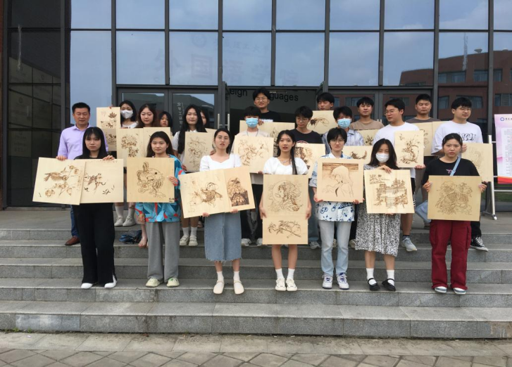 听完讲解、看完示范,同学们便迫不及待地拿起电烙铁进行实践,在木板上烙制自己心中的画,烙铁在木板上烫出深浅不一的色调,深黑如墨,浅淡如晕,同学们都觉得很新鲜,是一次奇妙的艺术体验。郑红伟对同学们逐一进行精心指导,结合他自身多年的烙画经验与学生们进行探讨。郑红伟希望每一个同学通过努力都能创作出比较满意的烙画作品,丰富自我文化需求,提升工艺美术水平,提高艺术创作能力。他说,烙画是中国最具民间的艺术,以前叫火针刺绣,是艺术珍品,他强调在烙画艺术中要坚持传承中国画的元素,如用笔、韵味、写意、留白、开合等元素,要弘扬中华优秀传统文化,进一步增强文化自信。活动进行了四个小时,同学位仍兴致盎然,意犹未尽,深深地被传统烙画艺术的魅力所感染,更加对中国传统工艺美术产生热爱之情。