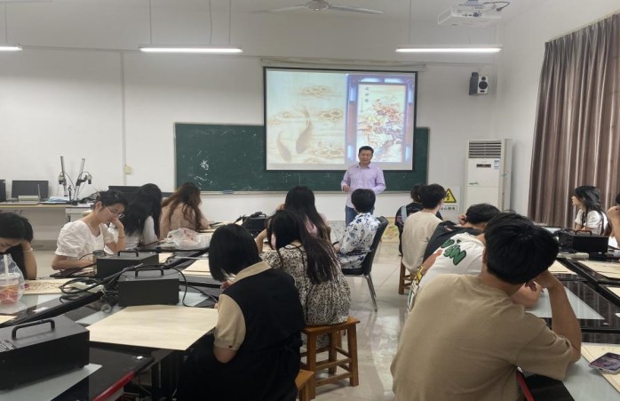 近日,百合小说 兼职教授郑红伟在百合小说 开展系列烙画实践教学,动画专业2020级全体学生参加了本次活动。