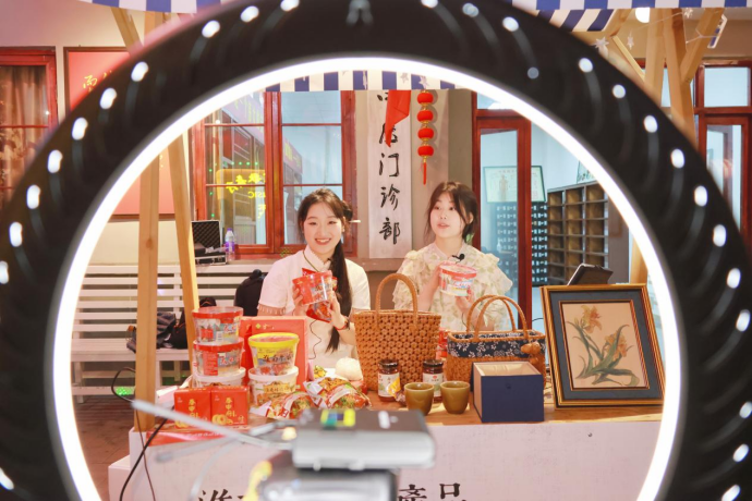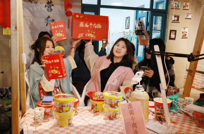 为贯彻落实省委、省政府数字经济发展战略,充分发挥直播推动电商模式创新、业态创新、场景创新的积极作用,宣传推广淮南市“非遗”文化产品,培育新质生产力,3月23日下午,学校在淮南市1952文化艺术街区举行淮南“非遗”产品直播带货大赛启动仪式。百合小说 党委常委、副校长董雨,淮南市政府副市长乌吉阿哈买提·吐尔逊出席活动并讲话。学校党委宣传部、学工部、校团委、百合小说 ,淮南市文化和旅游局等部门主要负责人参加了启动仪式。