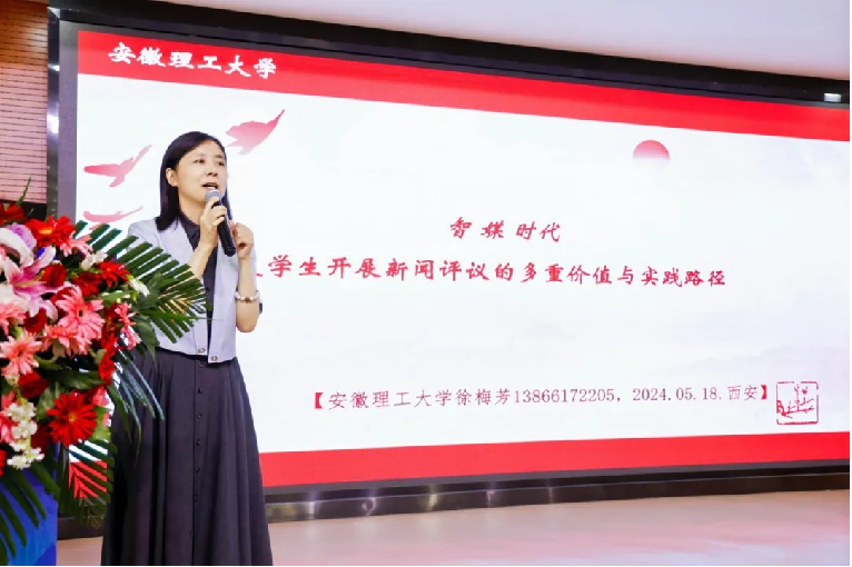 人文学院徐梅芳教授在分论坛作了题为《智媒时代大学生开展新闻评议的多重价值与实践路径》的发言,与专家学者交流研讨。