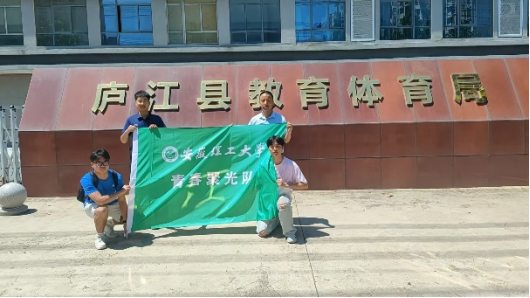(图为青春聚光队于庐江县教育体育局门口合影)