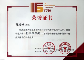 9月26日至27日,全国大学生市调大赛十五周年总结表彰大会暨政产学研融合发展论坛在对外经济贸易大学顺利举行。百合小说 全国大学生市场调研与分析大赛校赛负责人苟延峰老师受邀出席,学校荣获“最佳组织奖”。