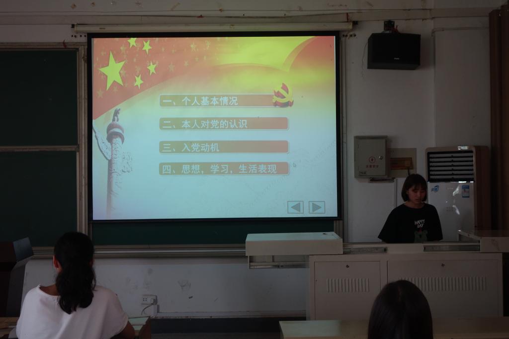 答辩分为个人陈述、回答问题和考评打分三个环节:首先由答辩对象采用PPT方式进行个人陈述,围绕对党的认识、入党动机、现实表现以及今后的努力方向进行了汇报。在回答问题环节,答辩对象从题库中随机抽取3道题目进行回答,题目内容丰富,涵盖了党章党史、时事政治以及大学生日常生活中遇到的热点问题。充分考察了发展对象的理论水平以及对社会热点的观察和分析能力。答辩评委依据汇报内容、答辩表现对每个答辩对象进行了认真评分。会上现场公布了答辩成绩。根据答辩成绩和前面三个学年的学分绩点,结合平时表现,将择优确定重点发展对象。