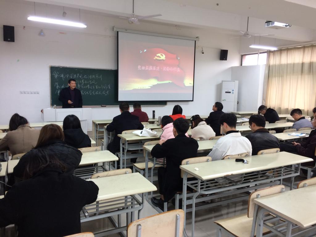 11月29日下午,人文学院党总支副书记、院长谢振安教授在学院楼A333教室为政治学与行政学、社会工作党支部教职工党员及部分学生代表上党课。