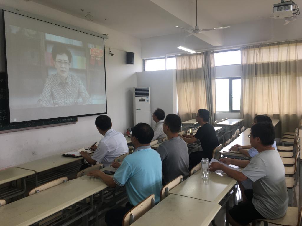 7月1日上午9点,人文学院党总支组织部分党员教师在崇智楼A331教室集中观看由中国人民大学、北京科技大学、复旦大学、西安交通大学4校联合开讲的“党旗飘扬·筑牢红色防火墙”高校党组织战“疫”示范微党课“七一”专场,同时组织不在校的师生在家通过网络观看视频。