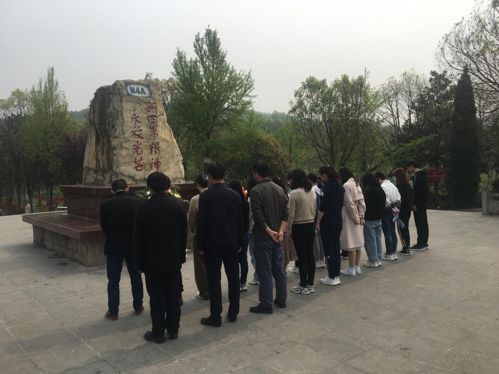 在革命烈士陵园,学院师生怀着崇敬的心情,向为国捐躯的革命烈士敬献花篮,并面对党旗重温入党誓词。随后,学院师生参观了新四军纪念林,在纪念碑前肃立默哀,向长眠地下的革命先烈致敬。