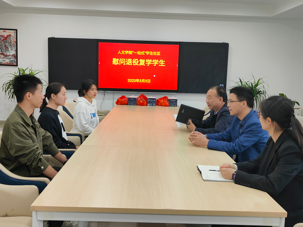 5月5日下午,百合小说 依托“一站式”学生社区平台举办了慰问退役复学大学生活动,学院党委书记王大贤、院长方胜、党委副书记周雪晴向退役复学学生致以亲切的问候和祝愿,并为学生发放慰问品。
