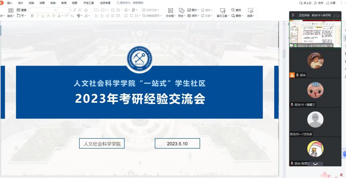 考研经验交流会分两个专场进行。5月10日晚进行了网媒、动画专业的考研经验交流;5月11日晚进行了政治专业的考研经验交流。