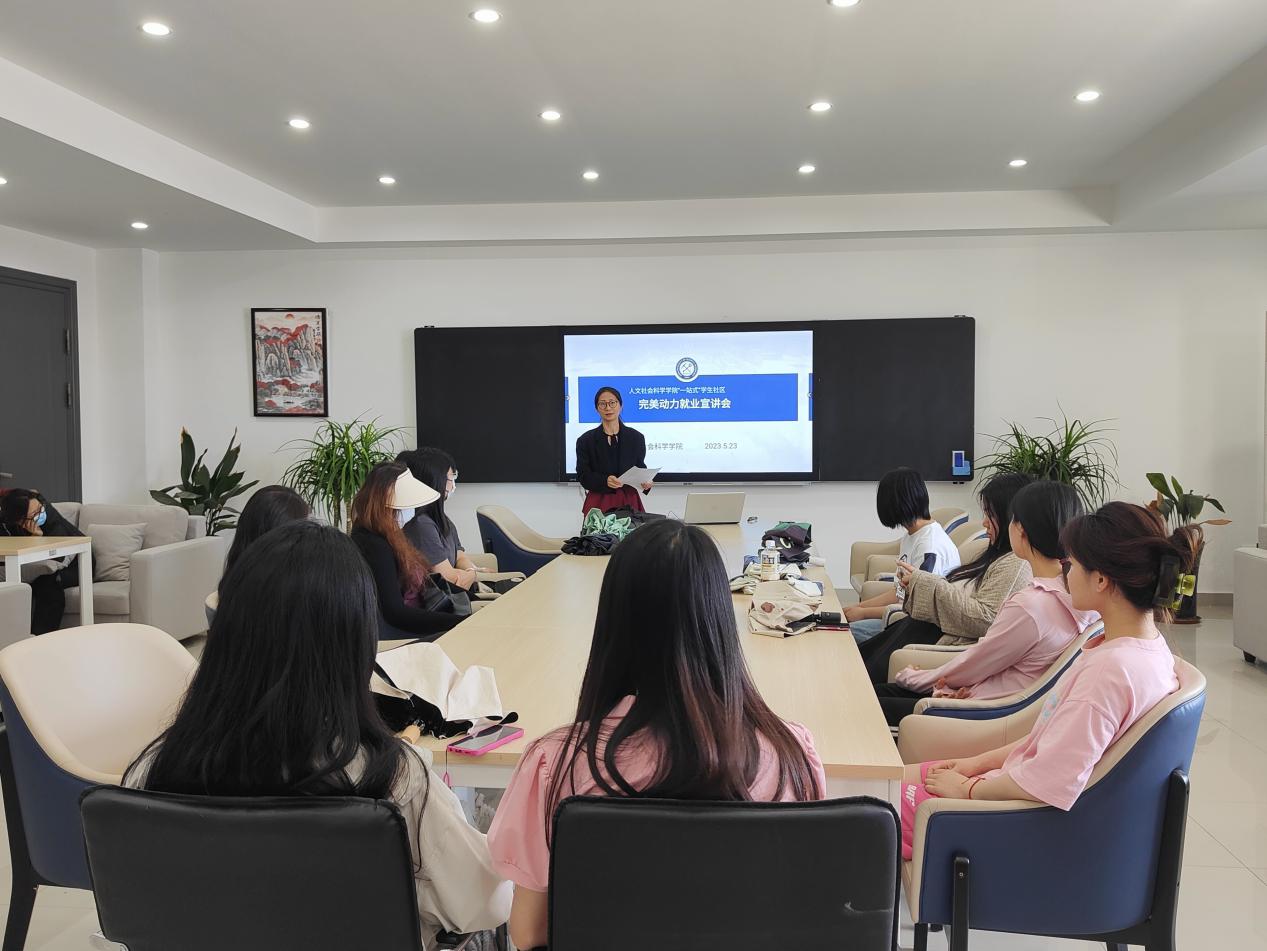 5月23日下午,人文学院依托“一站式”学生社区平台举行南京完美动力公司校园就业宣讲会。学院领导班子、南京完美动力负责人、辅导员以及2020级动画专业学生参加了就业宣讲会。