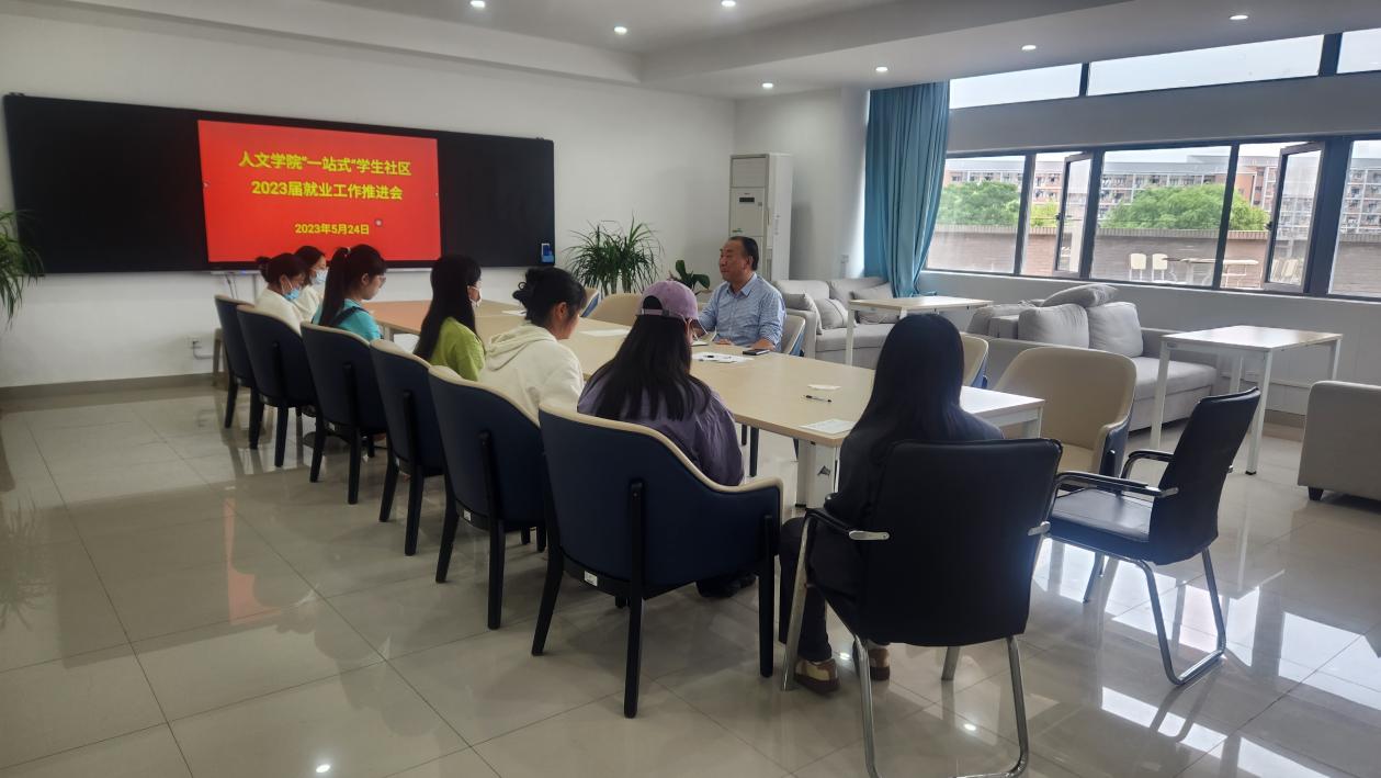 为推进学院2023届毕业生就业工作,深入贯彻落实国家“稳就业”决策部署,近日,人文学院在学院“一站式”学生社区分专业举办多场毕业生就业推进会。学院党政领导班子、毕业班辅导员、50余位未就业毕业生参会。