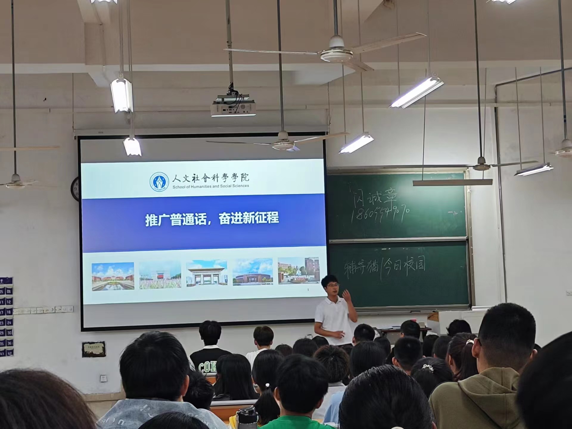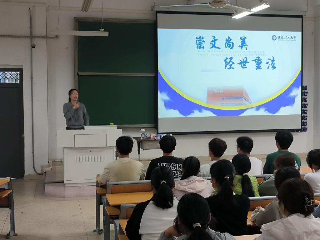 9月11日至17日是第26届全国“推普周”,人文学院结合学校启航教育的相关安排,邀请淮南市广播电视台百合小说主任播音员,安徽省十佳播音员主持人耿菲菲为全体师生开展普通话推广教育。同时,新生辅导员通过召开主题班会的形式,鼓励新生勇敢表达,积极参与大学生普通话竞赛、语言文字答题挑战、朗诵比赛等,在大学的广阔舞台锻炼自身的普通话表达能力,增强自身的核心竞争力。
