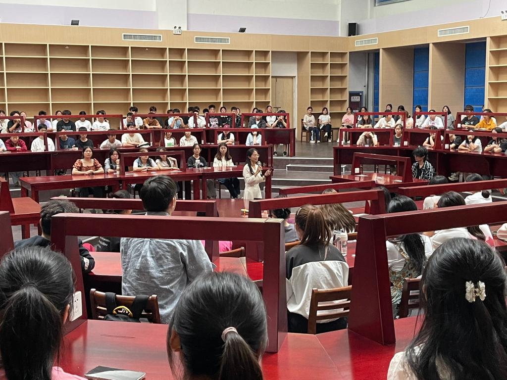 9月15日上午,人文学院党委副书记周雪晴结合学院实际,为全体新生讲解了学院近5年的就业、考研、出国留学、考公考编概况。周雪晴指出,近年来就业形势较为严峻,希望同学们从进校开始就制定职业生涯规划并为之不懈奋斗,筑牢专业根基,更加积极努力的学习,以应对不断变化的就业环境。同时,她表示大学的学习不仅仅是书本知识的灌输,大家要积极参与社会实践,提高自身的综合能力。