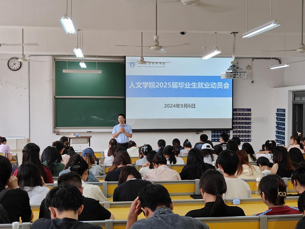 为提高我院毕业生对就业形势的认识,引导毕业生树立正确的就业观念,增强求职信心,促进毕业生高质量充分就业,9月6日,人文学院在明理北414教室召开就业动员会,学院党政主要负责人、系主任、毕业班辅导员以及全体2025届毕业生参加会议。本次会议由学院党委副书记周雪晴主持。