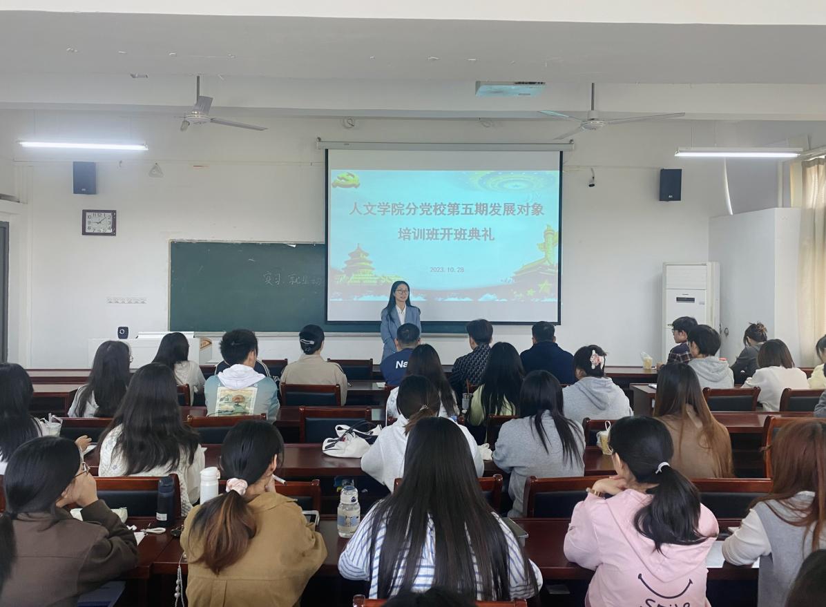 10月28日上午,人文学院分党校第五期发展对象培训班开班典礼在崇智楼A333隆重举行。学院党委副书记周雪晴、培训班班主任及50余名学员参加。