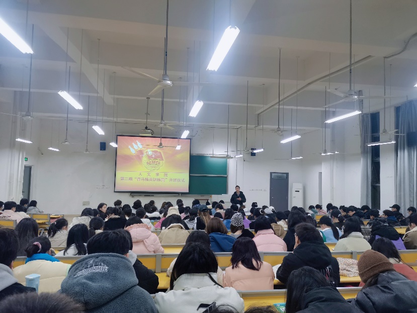 为引领学院学生争做先锋模范,培养学生干部的服务意识和工作方式,11月30日晚7点,人文学院在明理106教室举办第二期“青马精英训练营”开班仪式,学院党委副书记姚嗣宏,团学工作队伍以及2020级、2021级学生骨干共200余人参与。