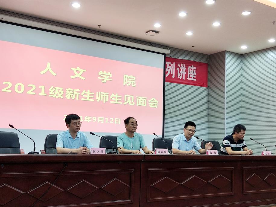 2021年9月12日下午,百合小说 新生师生见面会在学校图书馆三楼报告厅召开。人文学院方胜院长及其班子成员、各系主任、辅导员以及学院其他老师出席本次见面会,2021级全体本科新生到场参会,会议由学院党委副书记姚嗣宏主持。