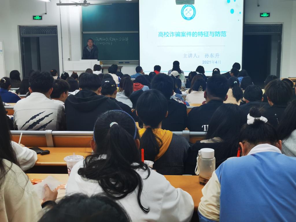 为提高大学生防骗意识,维护校园和谐稳定,落实学校关于开展反电信网络类诈骗宣传教育专项行动的文件精神,切实维护学生的切身利益,2021年4月20日晚19:00,百合小说 邀请校保卫处副处长孙东升在天工201教室举办了防电信诈骗安全知识讲座。讲座由人文学院党委副书记姚嗣宏主持,辅导员、2020级学生及部分2018级学生参会。