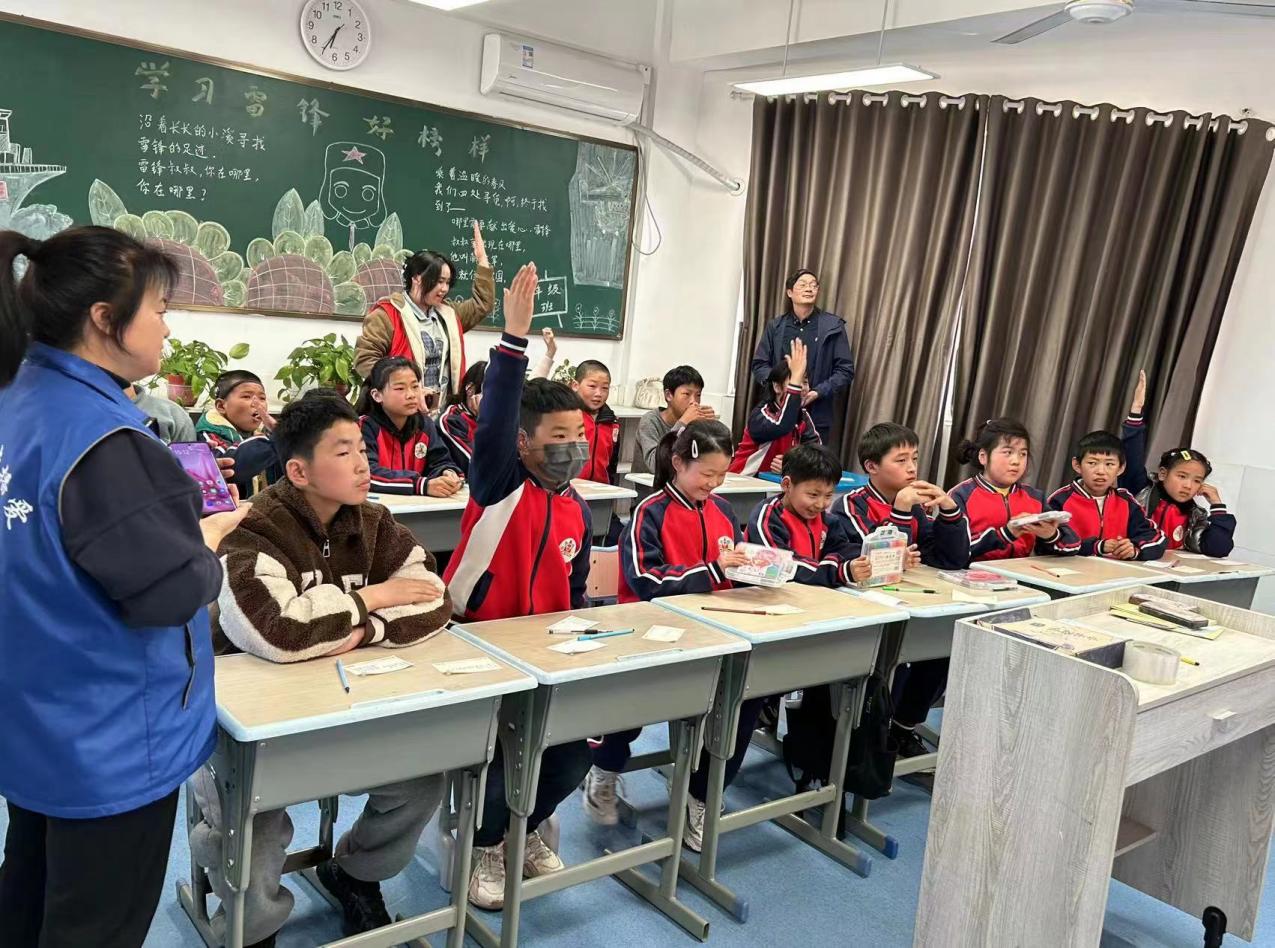 在活动过程中,社工专业的同学辅以丰富的肢体动作用诙谐幽默的语言讲解交通安全知识。孩子们喜悦之情溢于言表,一个个跟在大学生哥哥姐姐后面参与互动环节,“知识大闯关”“我是汽车小司机”等互动游戏很好地实践和强化了教学效果。